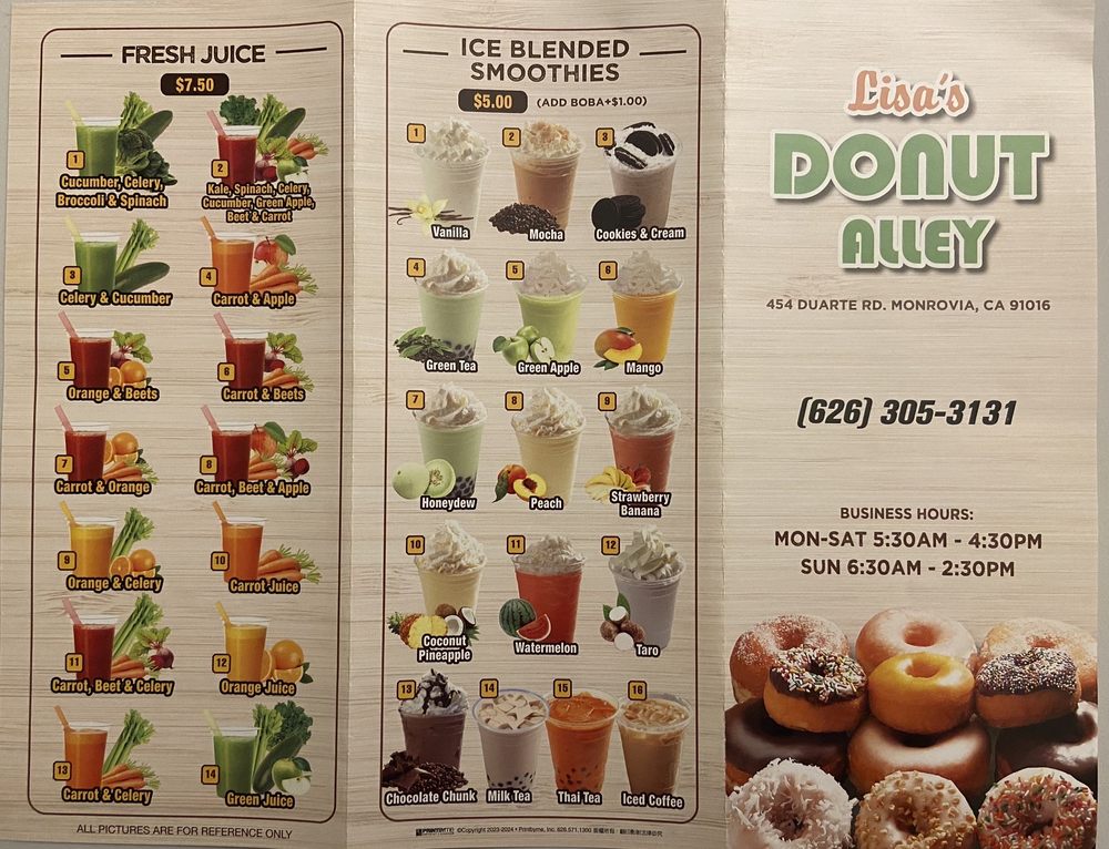 Welcome to Lisa’s Donut Alley, a charming gem located at 454 E Duarte Rd, Monrovia, CA. This delightful spot specializes in an assortment of donuts, croissants, and muffins that will ignite your taste buds. The menu features scrumptious treats like the Cinnamon Roll and Custard-filled Donut, each at just $3.50, alongside tempting options like the Apple Fritter and Bear Claw for $3.75.